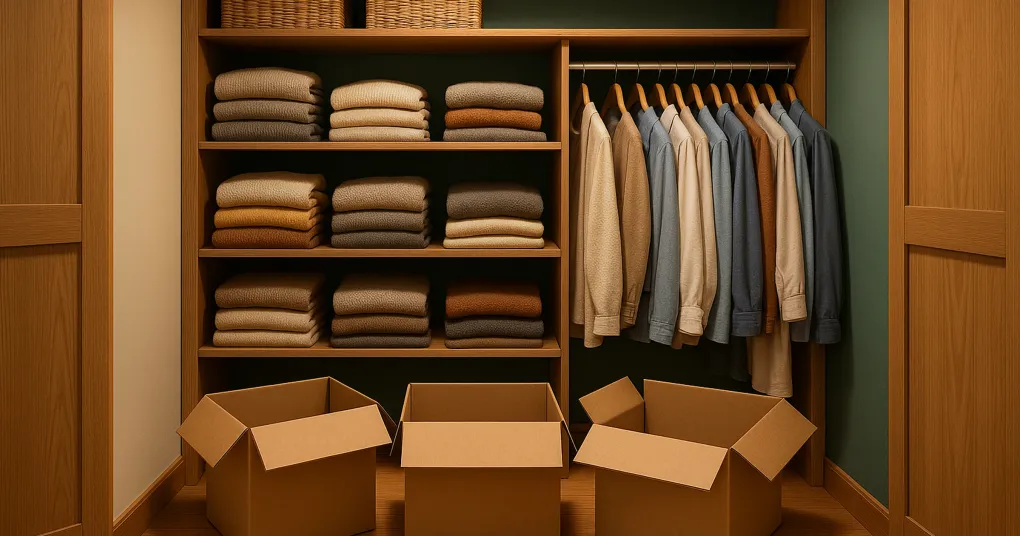 Day 28 — Closet shelf and high storage (20 min) The top shelf of the bedroom closet is where items go to be forgotten. Pull everything down and evaluate it — keep only items with a clear use case within the next 12 months.