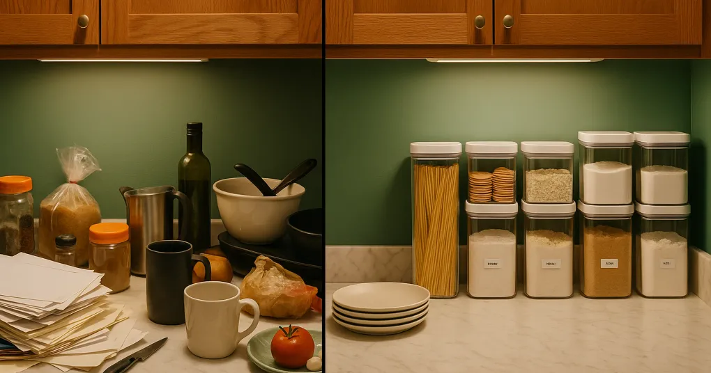 Roster et al.’s (2016) finding that perceived control mediates the stress response implies that visible, frequently-entered spaces have the highest stress-reduction yield per unit of organizational effort. Your kitchen counter, your desk surface, your entryway — these are the spaces your brain registers entering and exiting dozens of times daily. Reducing clutter in these spaces restores the control signal faster than clearing the attic or storage room.